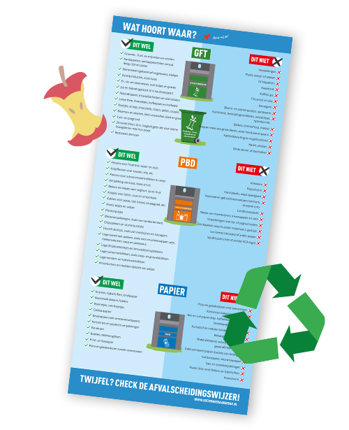 Twijfel je of jouw afval bij het GFT+E afval hoort? Download de wel/niet lijst voor een handig overzicht.