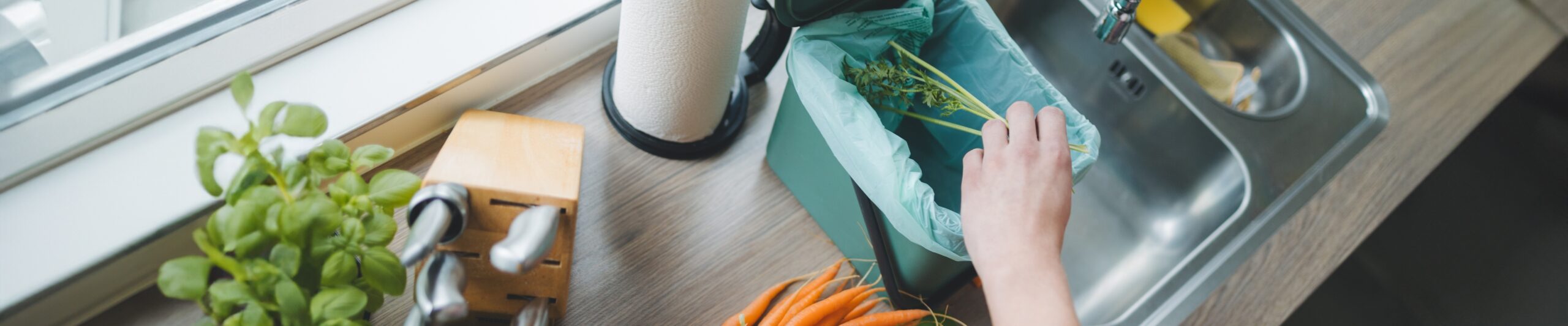 Afval waar etensresten op zit, kun je schoon spoelen met water voordat je het in de vuilniszak doet.